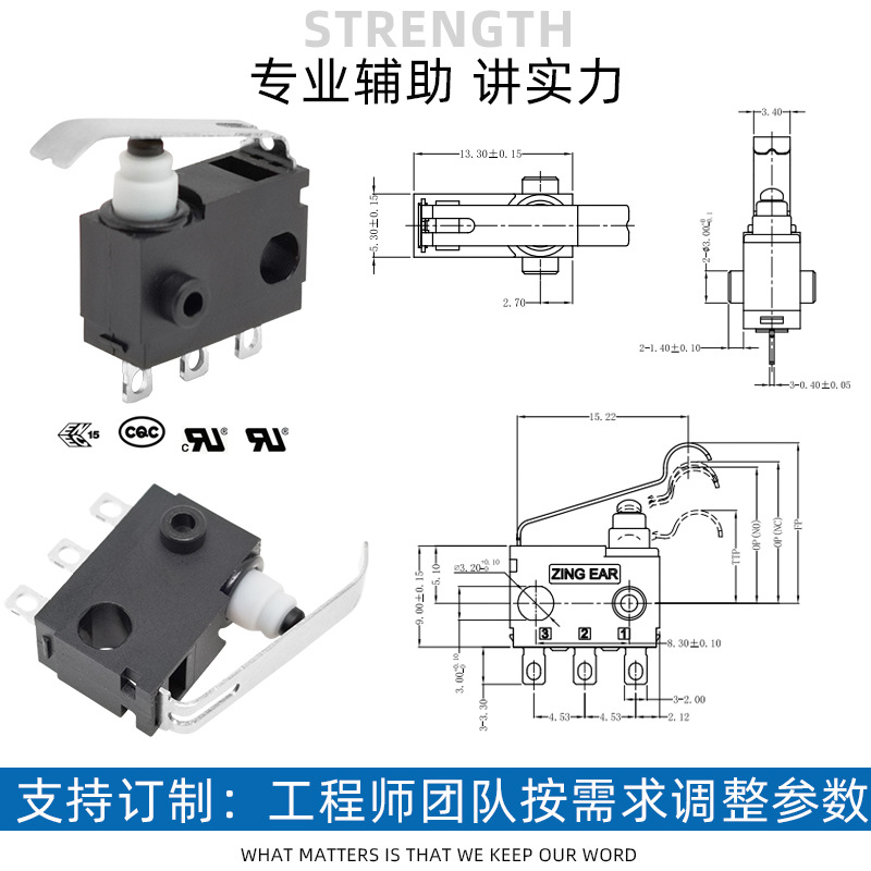 ZINGEAR共享停车设备G306-150S0汽车门锁配件小型防水微动开关3脚