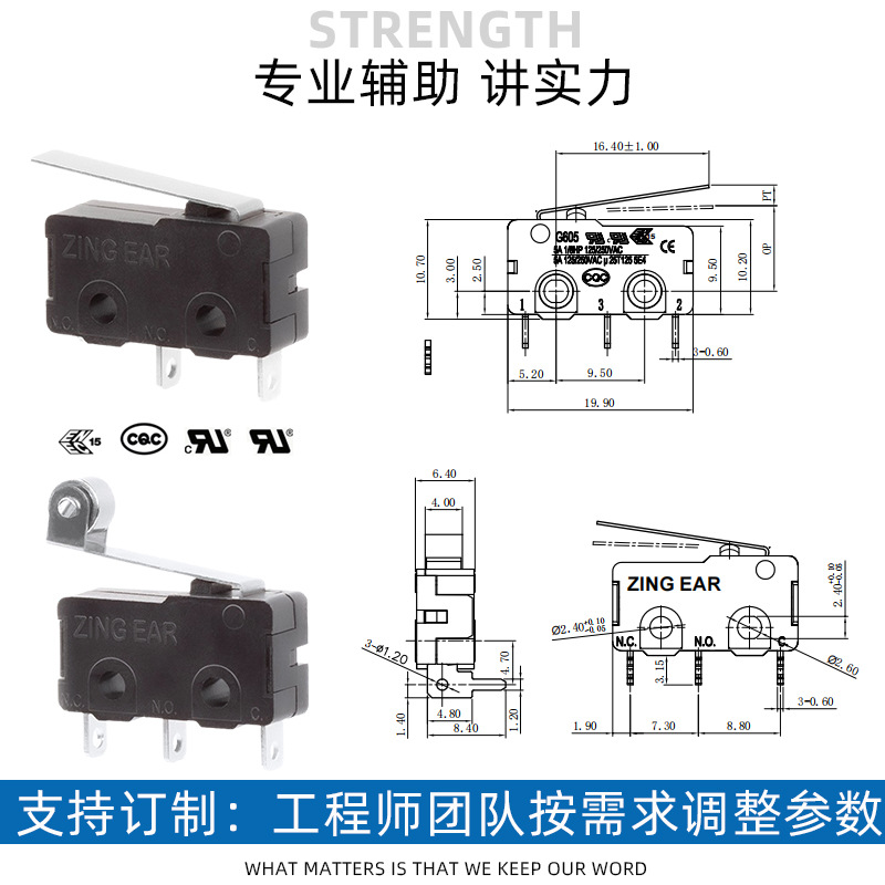 ZINGEAR厂家G605替SSG新能源岚图梦想家安全带开关UL认证微动开关