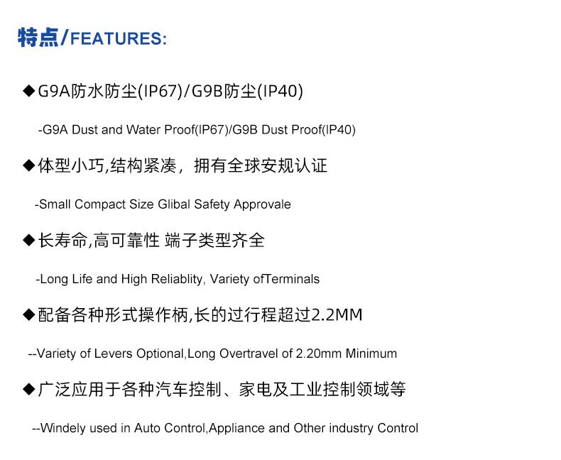 ZINGEAR车载冰箱门检测安全开关G9A05摩托车刹车防水微动开关带线