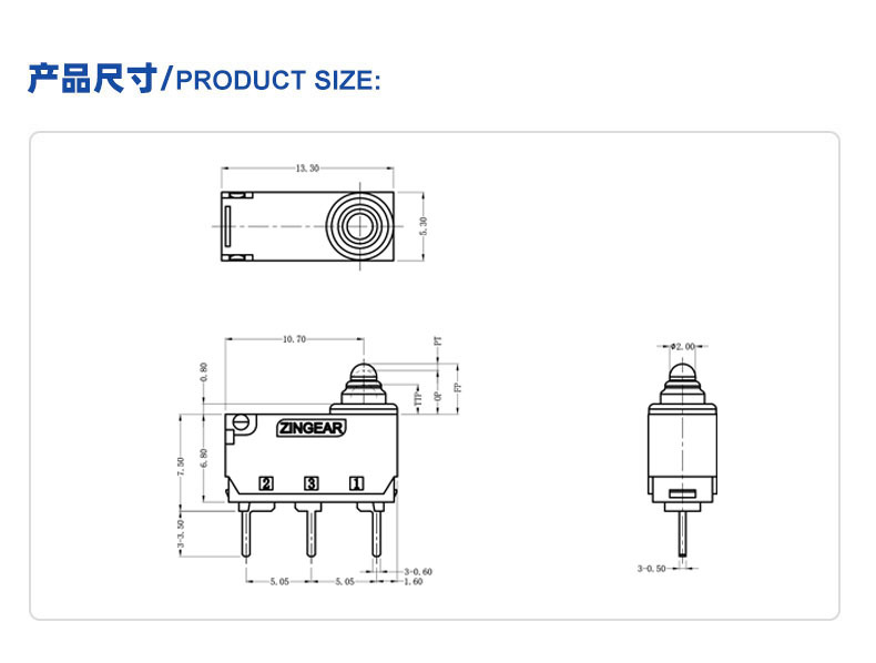 ZINGEAR厂家新能源汽车防爆阀0.1a小型微动开关 IP67防水微动开关